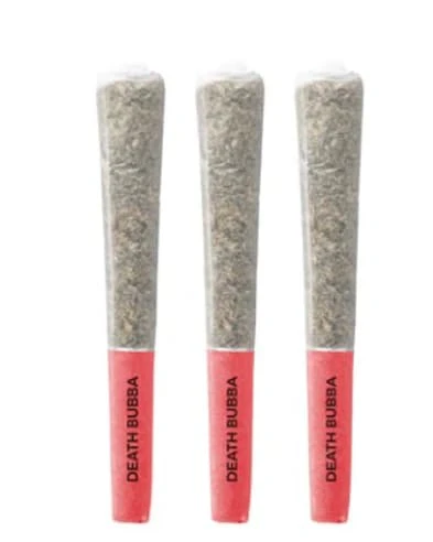 A British Columbia classic, Death Bubba is known as a heavy indica. The spade-shaped buds are dense and large, finished with a thick layer of frost - expect sticky fingers from this flower. Upon opening, a clean pine aroma greets the nose with a pungent flavour of spiced, earthy gas. Top terpenes include Farnesene, Caryophyllene, and Limonene